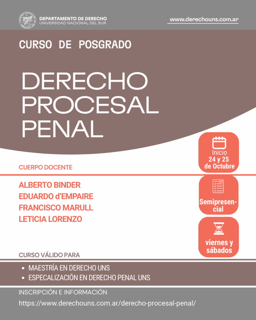 Jornadas\ Curso de posgrado. Derecho Procesal Penal Departamento de Derecho, UNS. Inicio 24 y 25 de octubre de 2025.- ETIQUETAS / posgrado